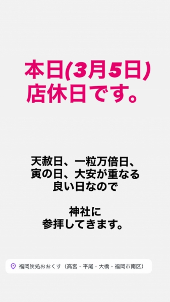 大楠の居酒屋「福岡炭処おおくす」のブログ 本日3月5日木曜日は